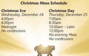 Christmas Eve Masses: 4 PM, 8 PM, 12 Midnight