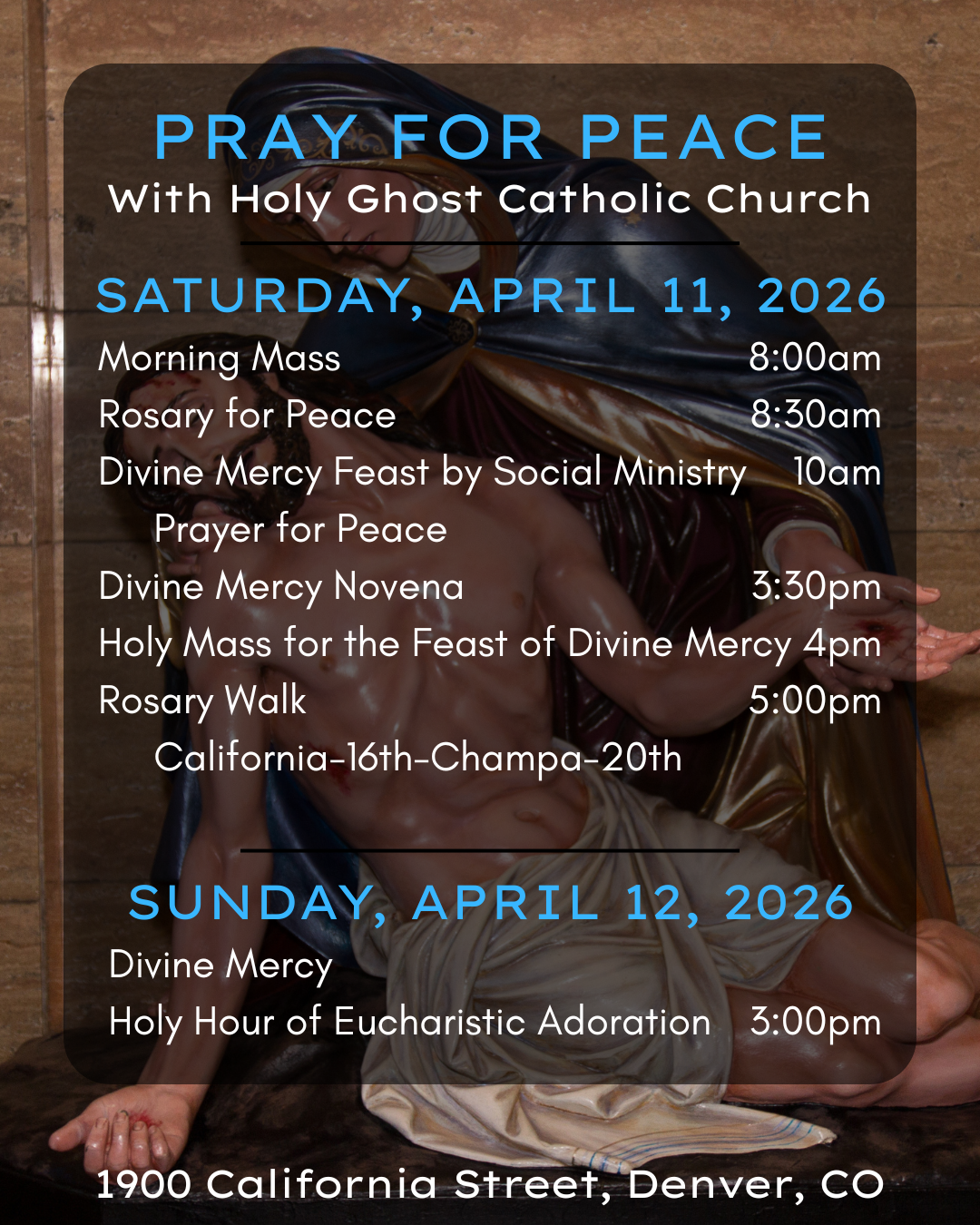 For more information or to register for events, please contact the parish office: office@holyghostchurch.org or (303) 292-1556.